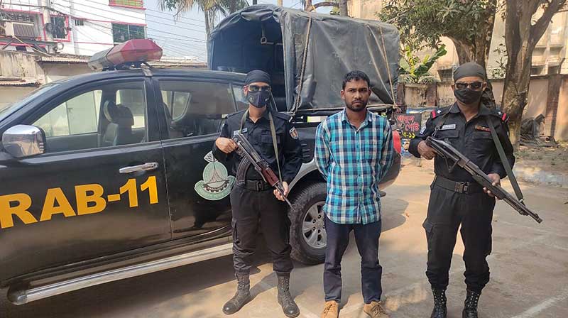 আটককৃত মুস্তাকিন সরকার মতলব উত্তর উপজেলার ফরাজীকান্দি ইউনিয়নের সরকার পাড়া গ্রামের সরকার বাড়ির রাজ্জাক সরকারের পুত্র। পরে তাকে মতলব উত্তর থানায় পাঠানো হয়। এ নিয়ে রোববার সন্ধ্যায় কুমিল্লা র্যাব ১১ একটি প্রেস বিজ্ঞপ্তি প্রেরণ করেন গণমাধ্যমে।