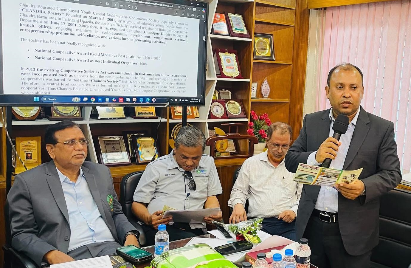 পরিদর্শন, মতবিনিময় এবং অভিজ্ঞতা বিনিময়কালে উপস্থিত ছিলেন বাংলাদেশ জাতীয় সমবায় ইউনিয়নের সভাপতি আবদুস সালাম, বাংলাদেশ জাতীয় সমবায় ইউনিয়নের পরামর্শক সুব্রত ভৌমিক, কুমিল্লা সমবায় একাডেমীর অধ্যক্ষ কাজী মেজবাহ উদ্দিন আহমেদ, বাংলাদেশ জাতীয় সমবায় ইউনিয়নের সাধারণ সম্পাদক ও চান্দ্রা শিক্ষিত বেকার যুব বহুমুখী সমবায় সমিতির সভাপতি, রাষ্ট্রীয় পুরস্কারপ্রাপ্ত সমবায়ী মোঃ জসিম উদ্দিন শেখ, বাংলাদেশ ইন্সুরেন্স কো-অপারেটিভ সোসাইটির চেয়ারম্যান মাসুদা বেগম, চান্দ্রা শিক্ষিত বেকার যুব বহুমুখী সমবায় সমিতির নেতৃবৃন্দ।