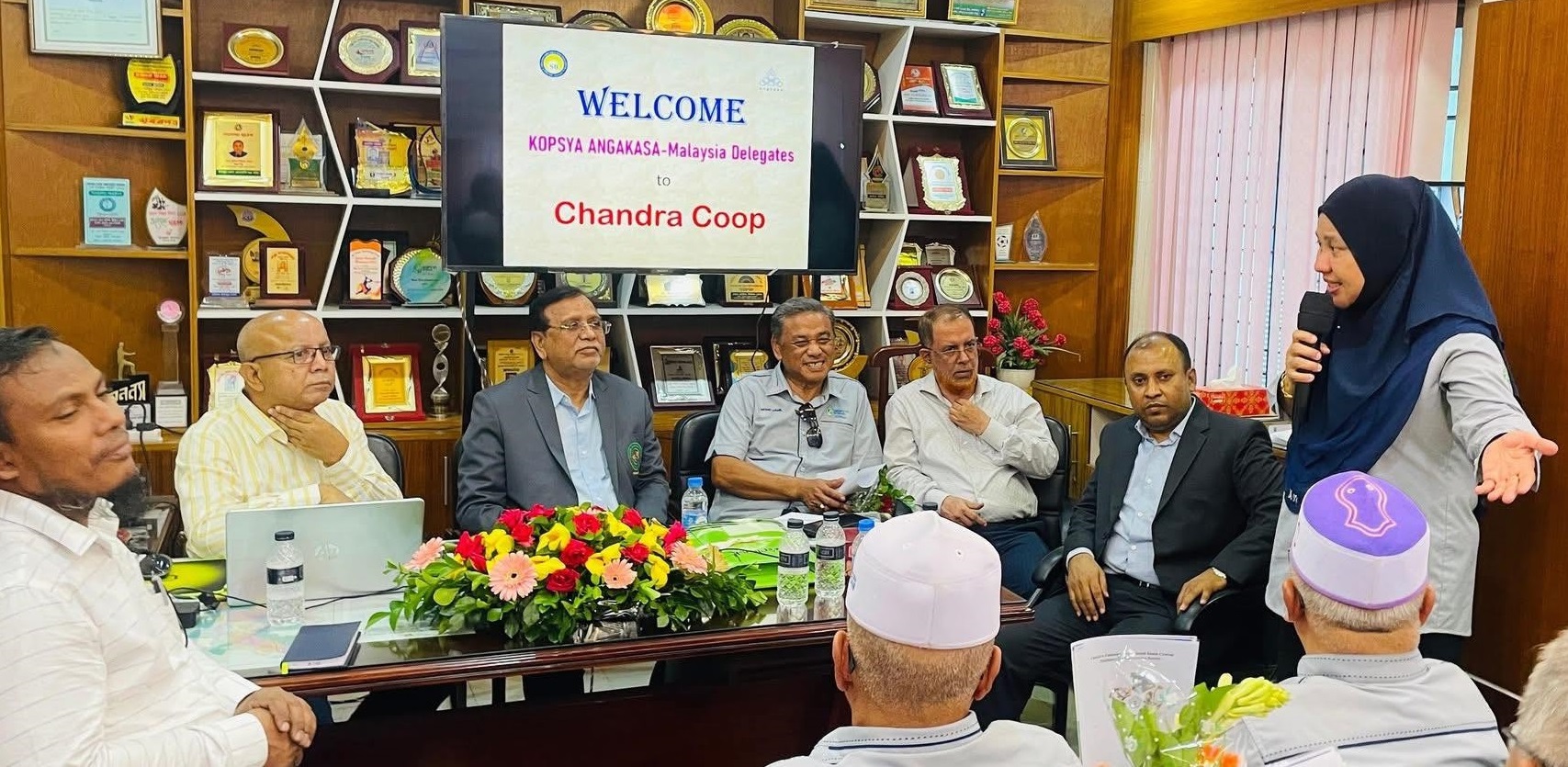 সমবায় সমিতির অভিজ্ঞতা বিনিময়ের লক্ষ্যে মালয়েশিয়ার শীর্ষ সমবায় সংগঠন ‘কোপেরাসী পেম্বিয়ায়ান স্যরিয়াহ আংকাসা বেরহাদ’ কোপসিয়া’র ২০ সদস্যের একটি উচ্চ পর্যায়ের প্রতিনিধি দল চাঁদপুর এসেছেন। গতকাল মঙ্গলবার (২৮ অক্টোবর) এই প্রতিনিধি দল রাষ্ট্রীয় পদকপ্রাপ্ত চাঁদপুরের সমবায় সংগঠন ‘চান্দ্রা শিক্ষিত বেকার যুব বহুমুখী সমবায় সমিতি লিমিেটেড’ এবং ‘শিক্ষিত বেকার কেন্দ্রীয় সমবায় সমিতি লিমিটেড’ পরিদর্শন করেন।