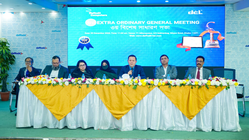 সভায় ড্যাফোডিল কম্পিউটার্স পিএলসি এর ডাইরেক্টর, ইন্ডিপেন্ডেন্ট ডাইরেক্টরবৃন্দ ও কোম্পানী সেক্রেটারীসহ উল্লেখযোগ্য সংখ্যক শেয়ার হোল্ডার সরাসরি ও অনল্ইানে অংশগ্রহণ করেন। সভায় শেয়ার হোল্ডারগণ নো-ডিভিডেন্ড সহ ২০২৪-২০২৫ ইং অর্থ বছরের হিসাব অনুমোদন করেন। আগামী অর্থ বছরে আরও ভাল ব্যবসা করার আশা ব্যক্ত করে সভা সমাপ্ত ঘোষনা করেন এবং ৩য় ইজিএম একই দিন সোমবার সকাল ১১টায় হাইব্রিড প্লাটফরমে অনুষ্ঠিত হয়।