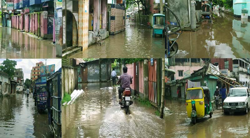 শহরে পর্যাপ্ত ড্রেনেজব্যবস্থা না থাকায় প্রধান প্রধান সড়ক ও পাড়া-মহল্লার অলিগলিগুলো ঘন্টার পর ঘন্টা ডুবে থাকে পানির নিচে। এতে নষ্ট হচ্ছে রাস্তার পিচ-ঢালাই। সৃষ্টি হচ্ছে ছোট-বড় অসংখ্য গর্ত। সড়কে গর্তের ফলে দুর্ঘটনার শিকার হতে হচ্ছে যানবাহন চালক ও পথচারীদের।