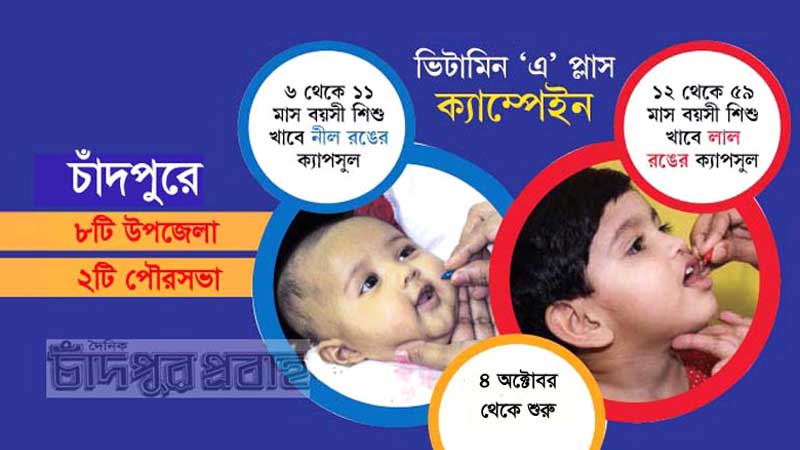 করোনা পরিস্থিতিতেও চাঁদপুরের সোয়া ৩ লাখ শিশু ভিটামিন ‘এ’ প্লাস খাবে