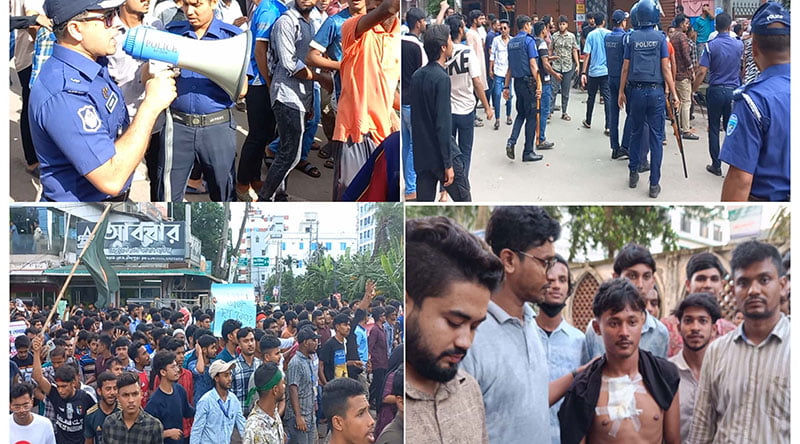জেলা ছাত্রলীগের সভাপতি জহির উদ্দিন বলেন, আমরা তাদেরকে (সাধারণ শিক্ষার্থী) শান্তিপূর্ণ আন্দোলন করতে বলেছি। কিন্তু তারা আন্দোলনের নামে রাস্তা-ঘাট বন্ধ করে জনদুর্ভোগের সৃষ্টি করে। আন্দোলনরত শিক্ষার্থীরা মিছিল থেকে আমাদের উপর ইট-পাটকেল নিক্ষেপ করেছে। এতে আমাদের ছাত্রলীগের সিয়াম, জসিম, শিহাব, মাসুদসহ কয়েকজন নেতা-কর্মী আহত হয়। আমরা এ হামলার তীব্র নিন্দা ও প্রতিবাদ জানাই।