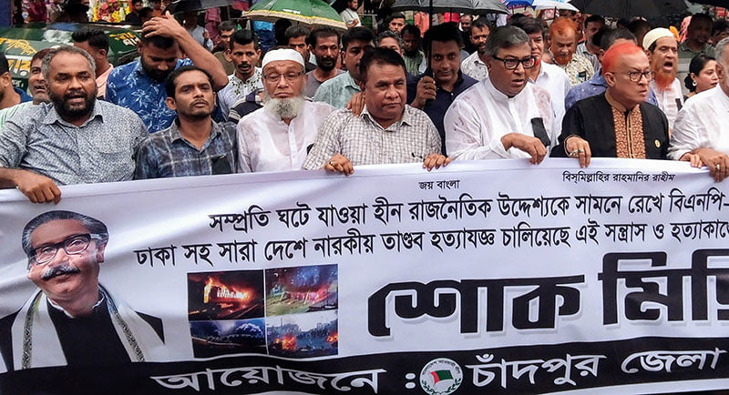 চাঁদপুরে সন্ত্রাস ও হত্যাকাণ্ডে সহিংসতায় নিহতদের স্মরণে জেলা আ’লীগের শোক মিছিল
