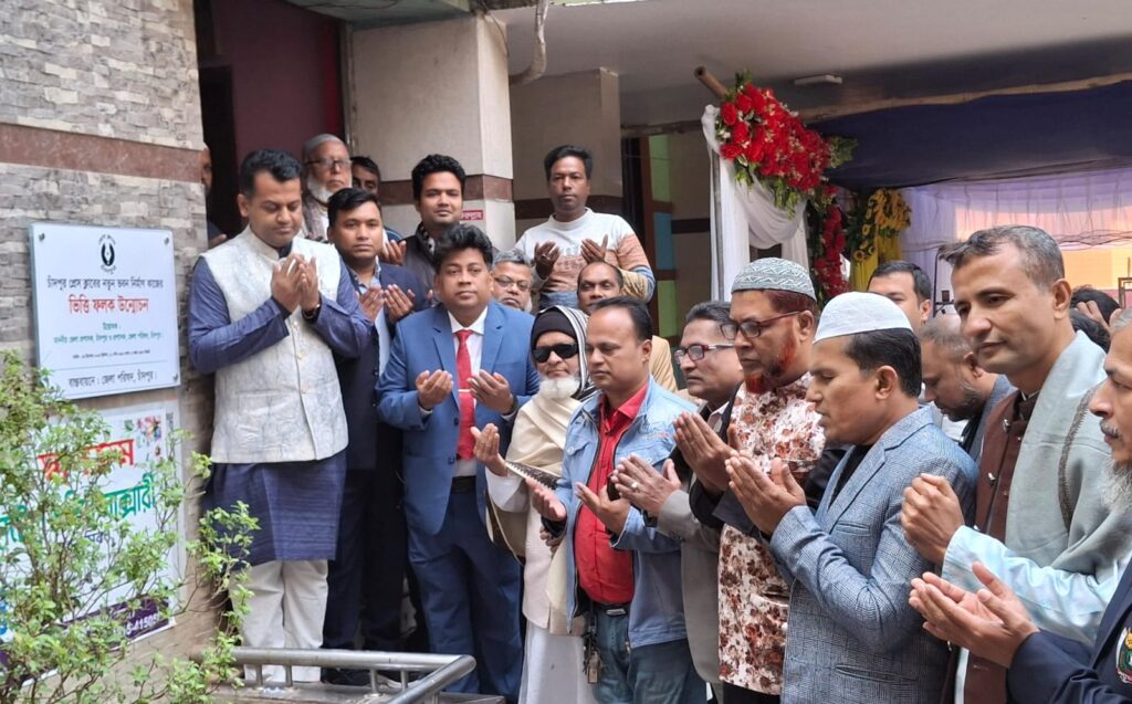 ভিত্তি ফলক উন্মোচন অনুষ্ঠান শেষে নতুন ভবন নির্মাণ কাজের সার্বিক সফলতা ও কল্যাণ কামনা করে দোয়া ও মোনাজাত পরিচালনা করেন চাঁদপুর প্রেস ক্লাবের সাবেক সভাপতি গিয়াসউদ্দিন মিলন।