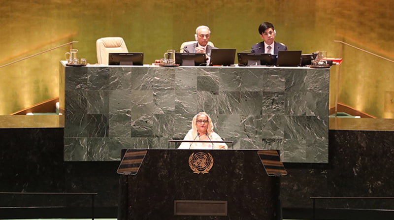 জাতিসংঘের অধিবেশনে যুদ্ধ স্যাংশন ও সংঘাত পরিহারের আহ্বান প্রধানমন্ত্রীর