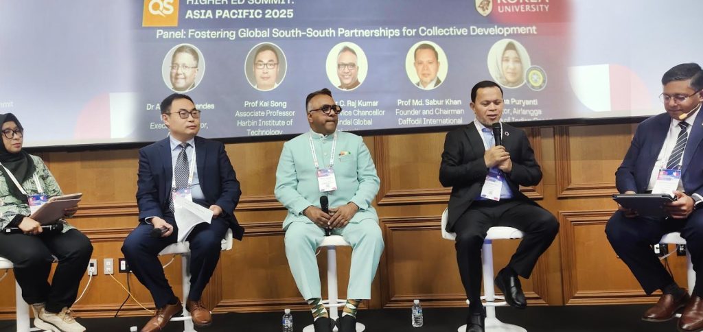 ড্যাফোডিল ইন্টারন্যাশনাল ইউনিভার্সিটির (ডিআইইউ) প্রতিষ্ঠাতা ও চেয়ারম্যান এবং অ্যাসোসিয়েশন অব প্রাইভেট ইউনিভার্সিটিজ অফ বাংলাদেশ (এপিইউবি) সভাপতি ড. মো. সবুর খান, কিউএস হায়ার এড সামিট: এশিয়া প্যাসিফিক ২০২৫-এ বিশিষ্ট বক্তা হিসেবে গ্লোবাল সাউথ-সাউথ সহযোগিতার জন্য একটি আকর্ষণীয় দৃষ্টিভঙ্গি উপস্থাপন করেন। “সামগ্রিক উন্নয়নের জন্য বিশ্বব্যাপী দক্ষিণ-সাউথ অংশীদারিত্ব গড়ে তোলা” শীর্ষক প্যানেল আলোচনাটি ৪-৬ নভেম্বর কোরিয়া বিশ্ববিদ্যালয় কর্তৃক আয়োজিত হয়েছিল। অধিবেশনে গ্লোবাল সাউথের বিশ্ববিদ্যালয়গুলি কীভাবে ঐতিহ্যবাহী দাতা-গ্রহীতা মডেলগুলিকে অতিক্রম করে ভাগ করা উদ্ভাবন এবং সাংস্কৃতিক শক্তির উপর ভিত্তি করে ন্যায়সঙ্গত, পারস্পরিক জোট গড়ে তুলতে পারে তা অন্বেষণ করা হয়েছিল। ড. খান উচ্চশিক্ষাকে নরম শক্তির একটি রূপ এবং টেকসই উন্নয়নের জন্য একটি অনুঘটক হিসাবে পুনঃস্থাপনের প্রয়োজনীয়তার উপর দেন।