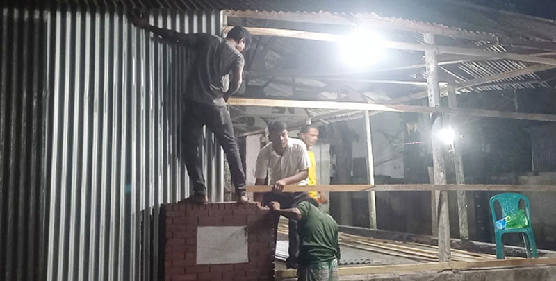 রোববার (১১ আগস্ট) সন্ধ্যার পরে মাদ্রাসা রোড লঞ্চঘাটে গিয়ে দেখাগেছে পুড়িয়ে দেয়া নৌ-থানা মেরামতের কাজ করছেন মিস্ত্রিরা। আগুন দেয়ার পরে থানার টিনের চাল ও ফিলার থাকলেও বাকী সব পুড়ে যায়। অবশিষ্ট অংশ থেকেই এখন মেরামত কাজ শুরু হয়েছে।