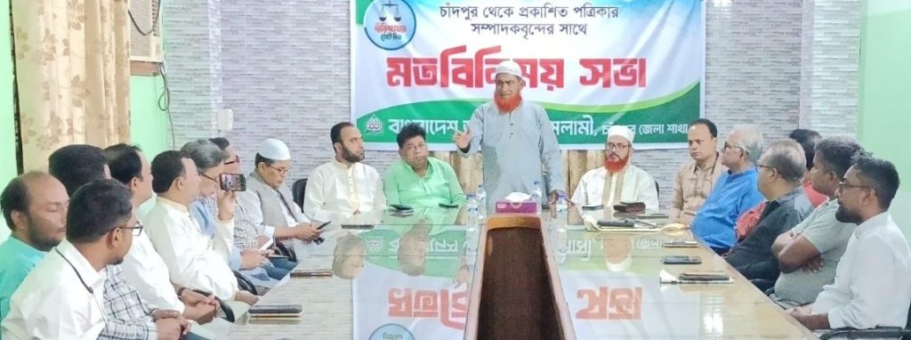 বুধবার চাঁদপুর প্রেসক্লাব মিলনায়তনে চাঁদপুর থেকে প্রকাশিত পত্রিকার সম্পাদক প্রকাশকবৃন্দের সাথে জেলা জামায়াতের মতবিনিময় সভায় সভাপতির বক্তব্যে তিনি এ মন্তব্য করেন।